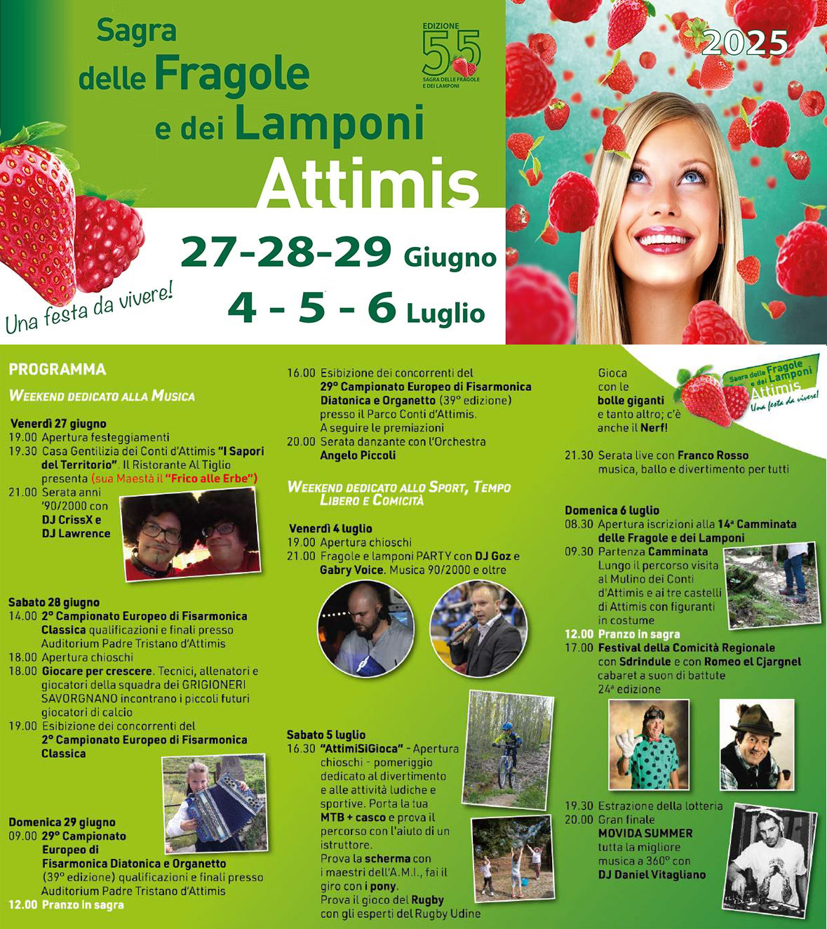 Torna una delle sagre più attese (e più buone) della nostra regione. Giunta alla sua 55ª edizione, la sagra delle fragole e dei lamponi promette anche quest’anno giornate all’insegna della gastronomia, dell’intrattenimento, dello sport e molto altro.