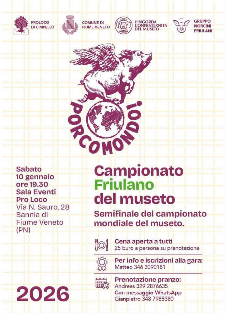 Torna per la seconda volta, sabato 10 gennaio 2026 a Fiume Veneto, il Campionato Friulano del museto che decreterà il miglior muset (muset in Friulì): uno dei prodotti più nobili della tradizione gastronomica italiana.
