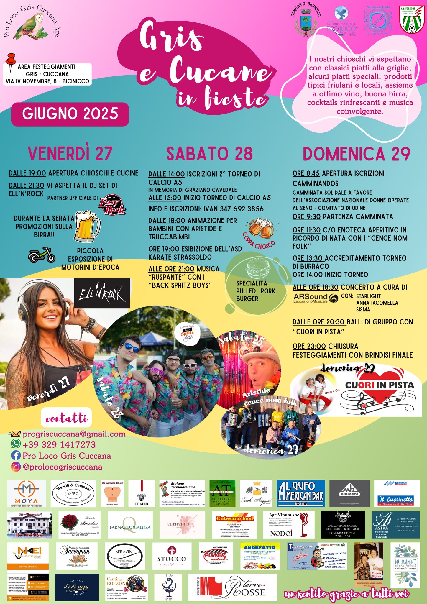 La pro loco di Gris/Cuccana, organizza questa recente sagra, nata sulle ceneri di quella dedicata al “Dindi” di qualche anno fa. Sarà una festa dedicata a tutti, con tanto sport, musica e divertimento,