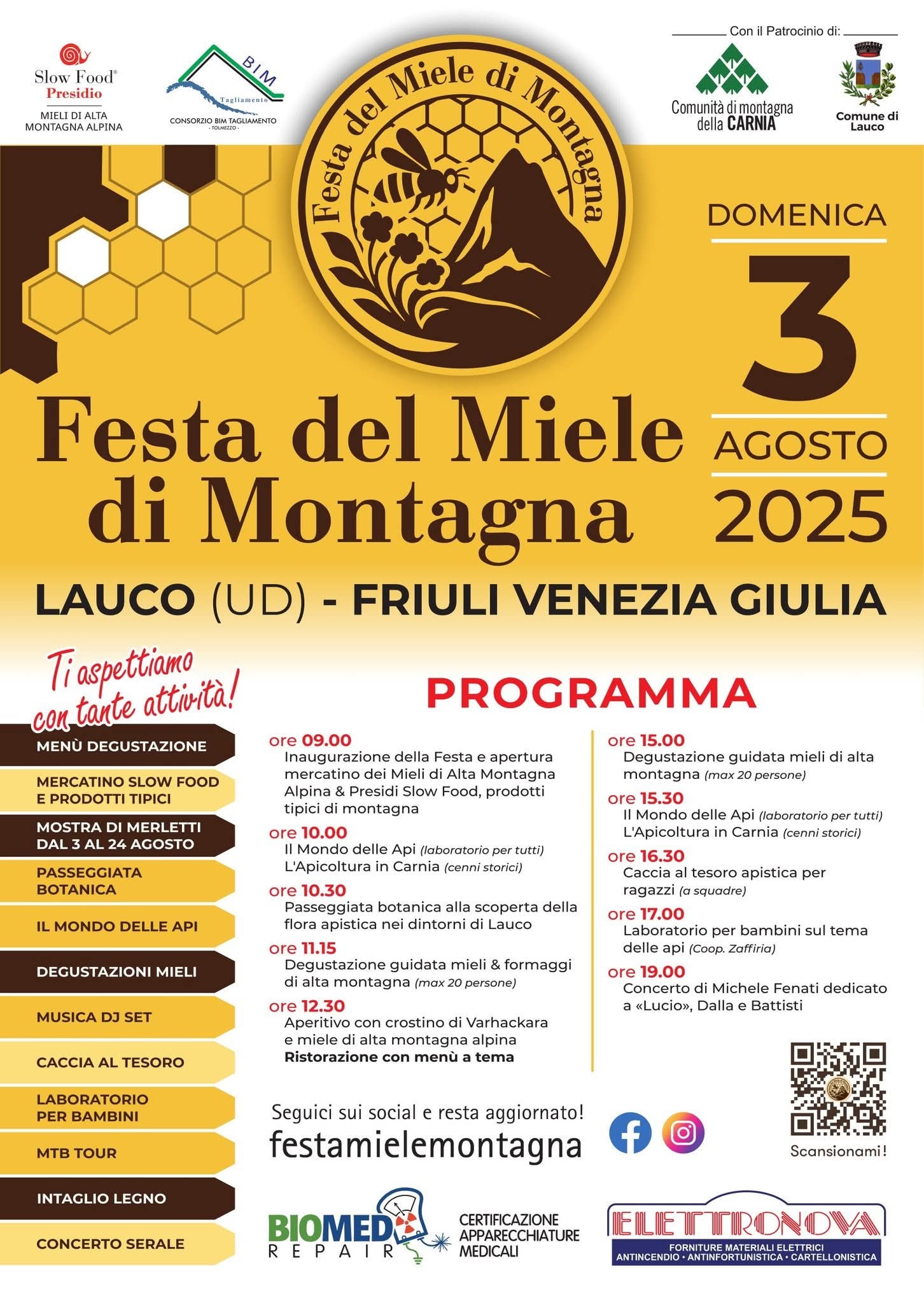 Domenica 3 agosto si terrà a Lauco una nuovissima e lodevole festa, la “Festa del Miele di Montagna”, per celebrare la qualità e l’importanza del miele, entrato a far parte del presidio Slow Food “Mieli di Alta Montagna Alpina”, ma anche l’importanza dell’apicoltura e delle api per la conservazione dell’ambiente.