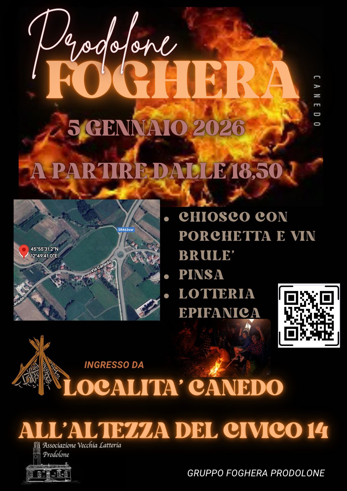 Il Gruppo Foghera di prodolone assieme all’associazione vecchia latteria di Prodolone, organizza questo tradizionale falò epifanico, previsto per le ore 18.45. Non mancheranno brulè, pinsa e porchetta per tutti e la grande lotteria epifanica.