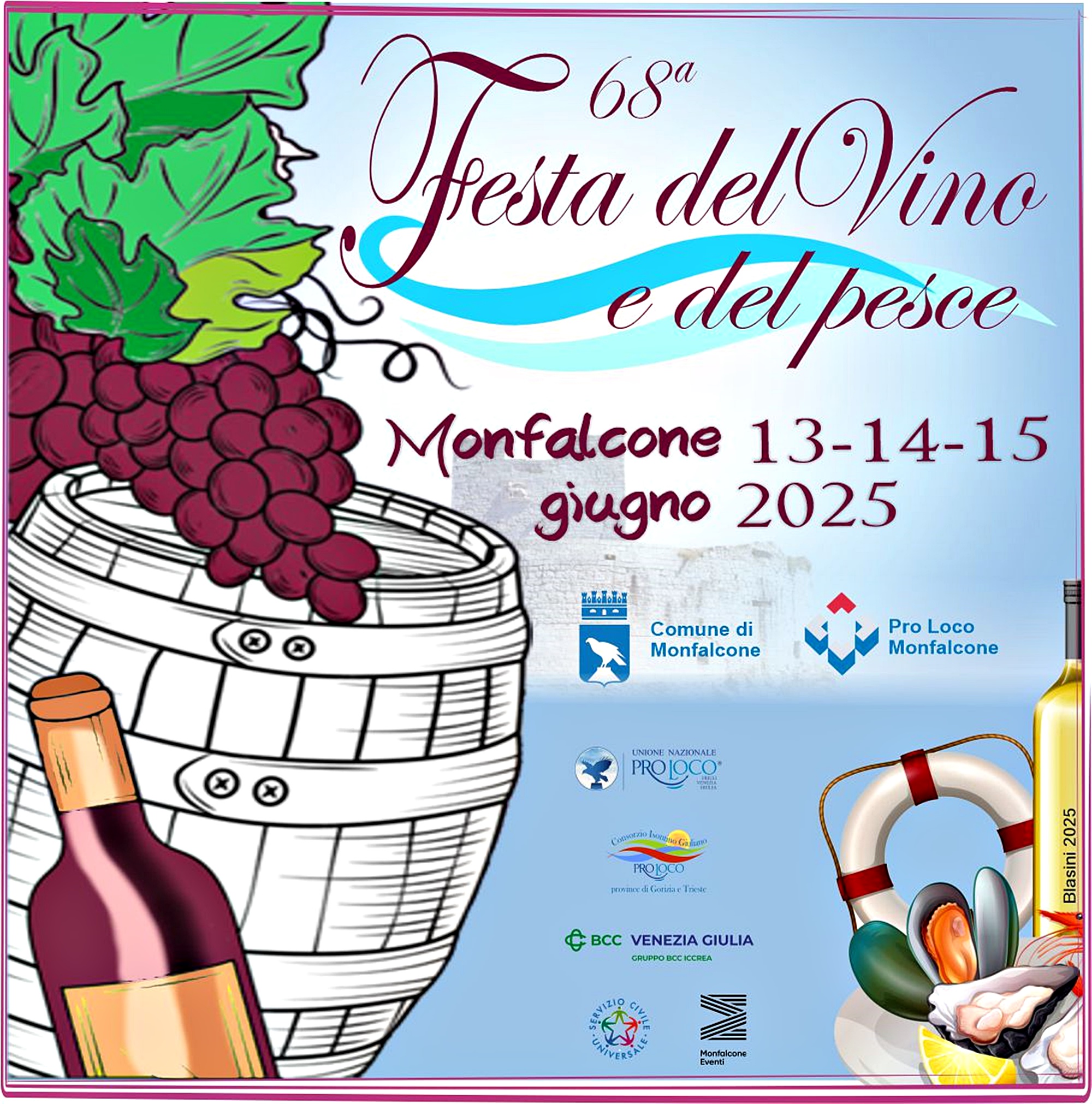 Nel rinnovato centro storico di Monfalcone (GO), da venerdì 13 a domenica 15 giugno 2025 arriva la Festa del Vino e del Pesce, dove potrete degustare vini proposti da varie aziende vitivinicole, abbinati a prodotti tipici locali.