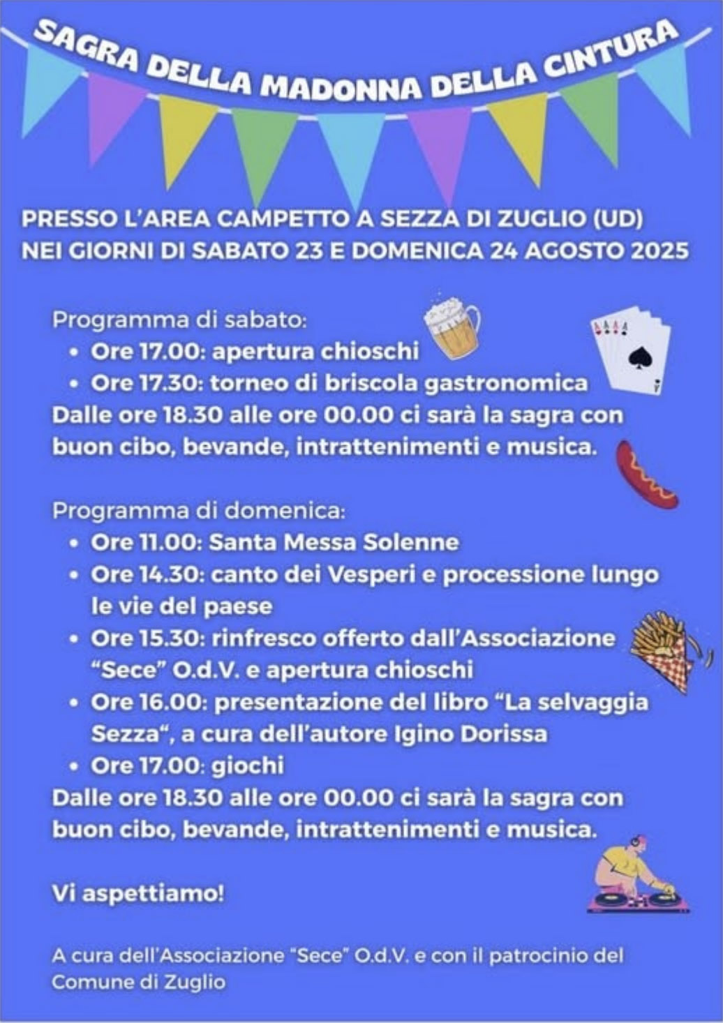 organizzata dall’ Associazione “Sece” odv e con il patrocinio del Comune di Zuglio, ogni anno si celebra la Madonna della Cintura nella piccola frazione di Sezza a Zuglio in Carnia (UD).