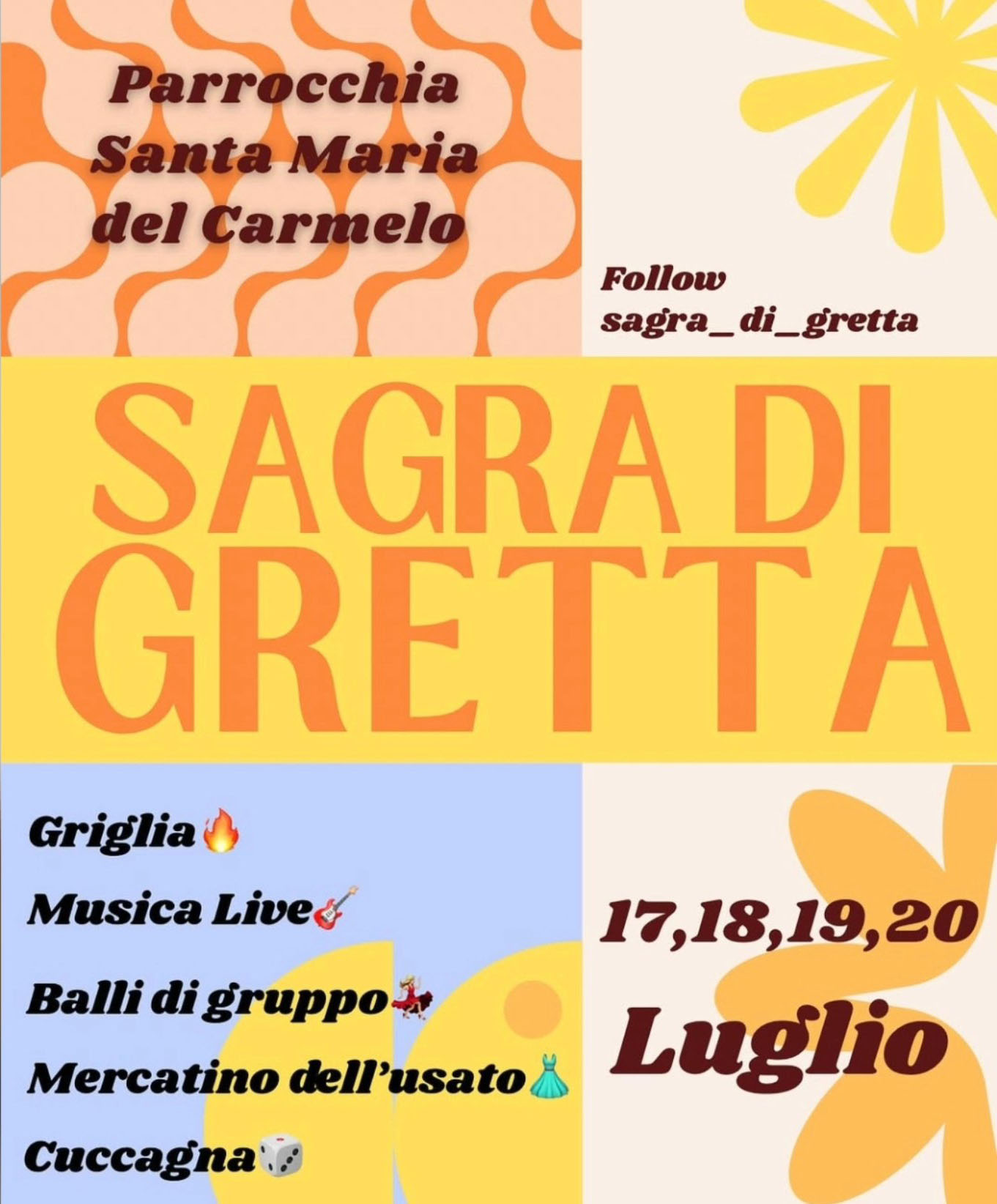 Per i prossimi giorni, il rione di Gretta si prepara ad uno degli eventi più attesi dell’estate. La Parrocchia di Santa Maria del Carmelo (via Aquileia/Strada del Friuli) – più precisamente il campo sportivo in via Carmelitani – ospiterà infatti la sagra di Gretta dal 17 al 20 luglio tra grigliate, musica dal vivo, balli di gruppo ed intrattenimento per grandi e piccoli. Ogni serata inizierà a partire alle ore 18:30.