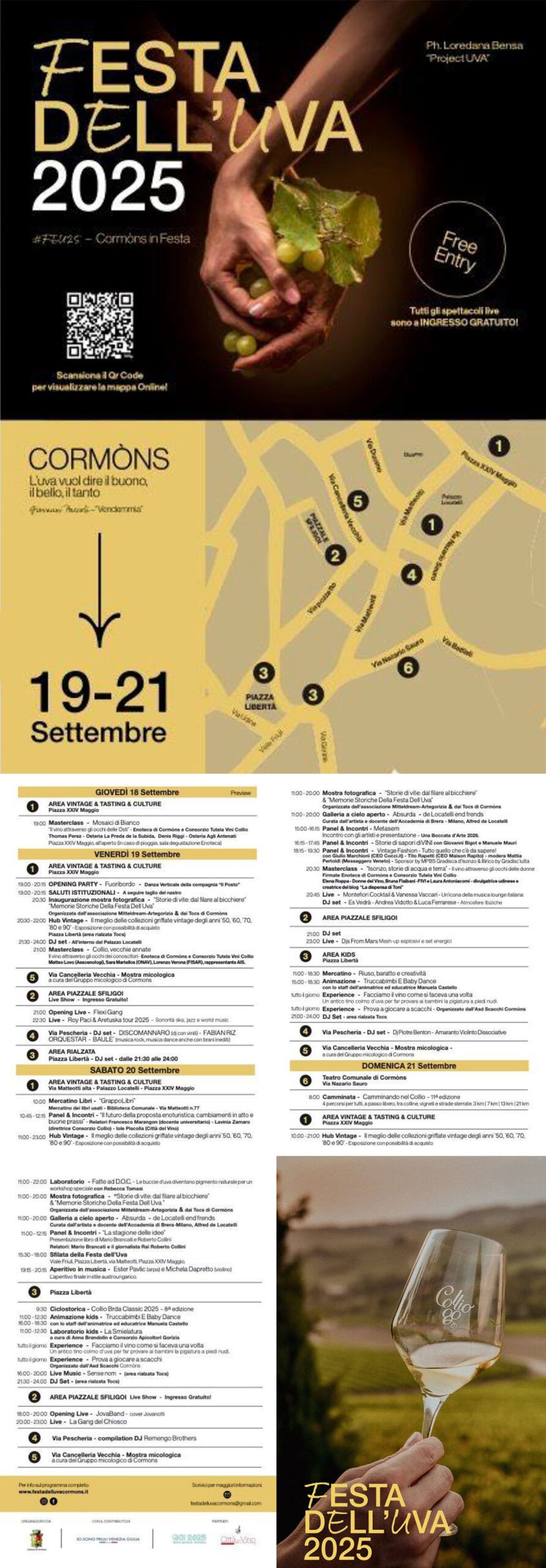 La Festa Provinciale dell’Uva a Cormòns, capitale del vino nel cuore del Collio, è una sagra che celebra la vendemmia, l’uva e il vino dal 1938.E’ una manifestazione che coinvolge tutta la cittadina, offrendo sia divertimento che approfondimenti e cultura legata al vino e al suo territorio. Tanti e imperdibili gli eventi proposti, con la […]